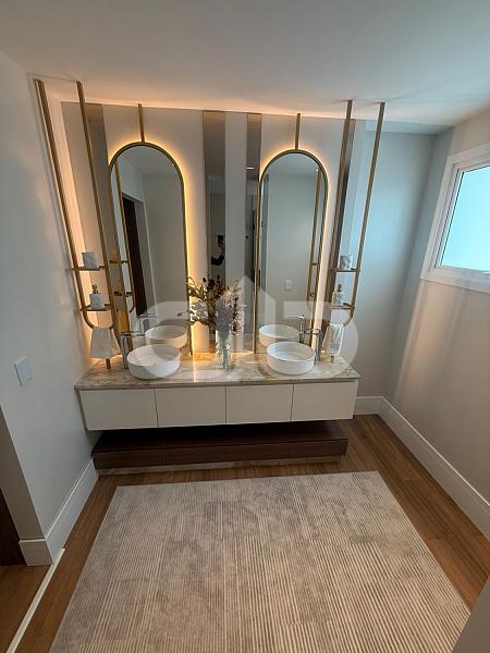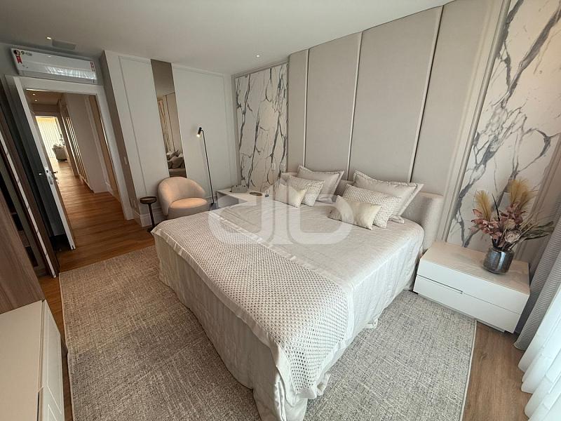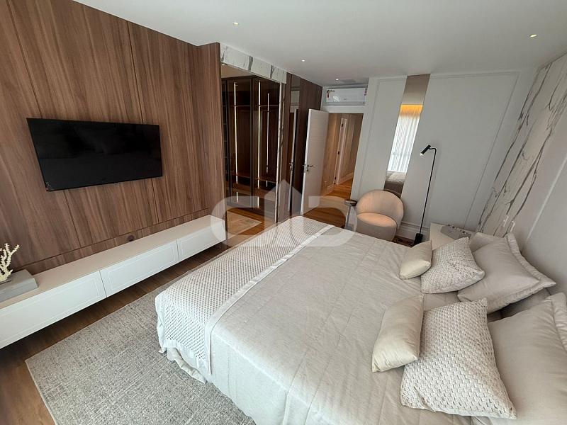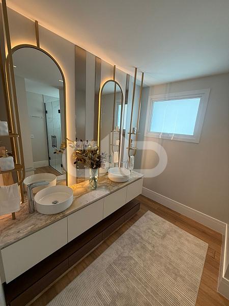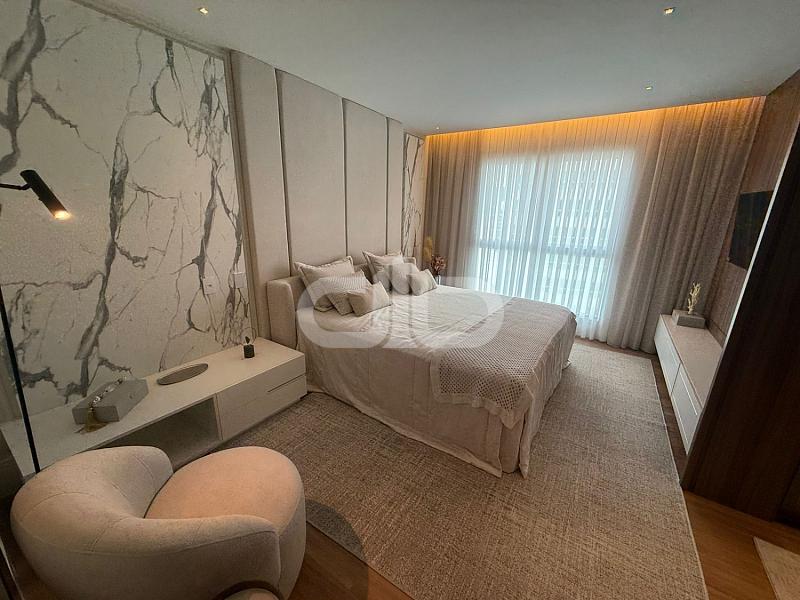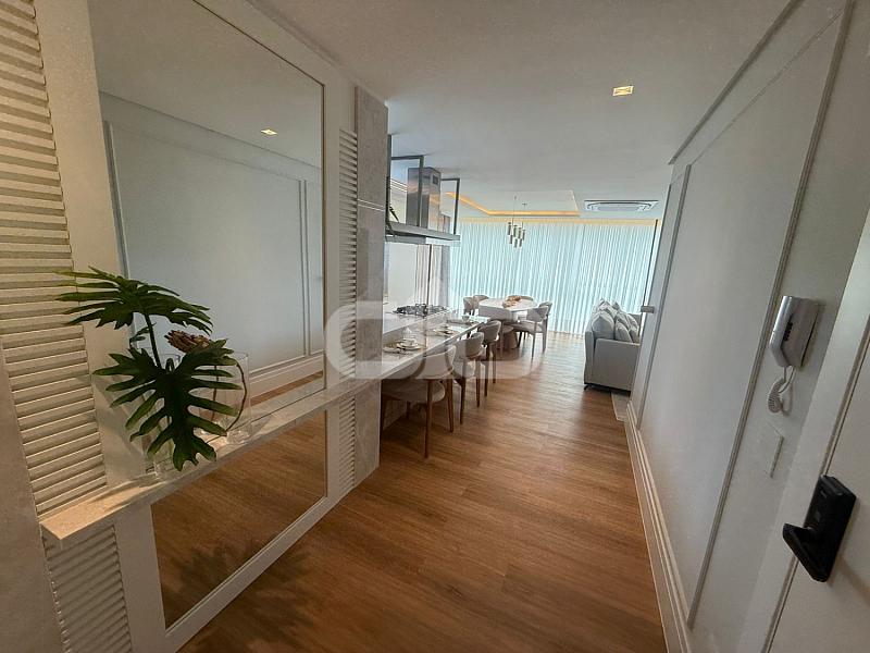 Apartamento Skyline Tower em Balneário Camboriú com 151m² privativos, 04 suítes, amplo living com dois ambientes, vista para o mar, banheiro social, sala de estar e sala de jantar, cozinha, lavanderia independente e 03 vagas de garagem.
